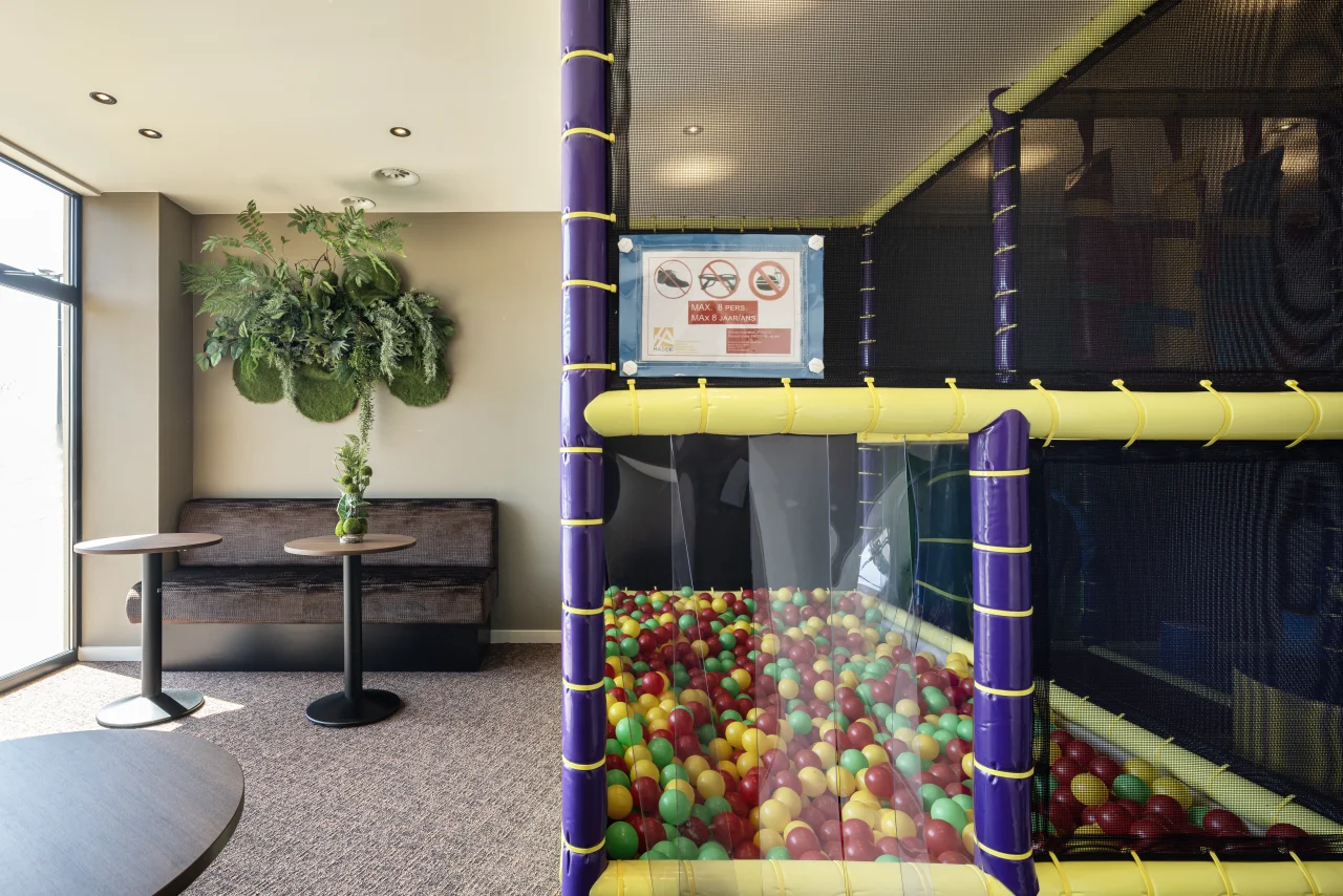 A playful indoor area with a colorful ball pit and toys – the perfect spot for little ones on rainy days.